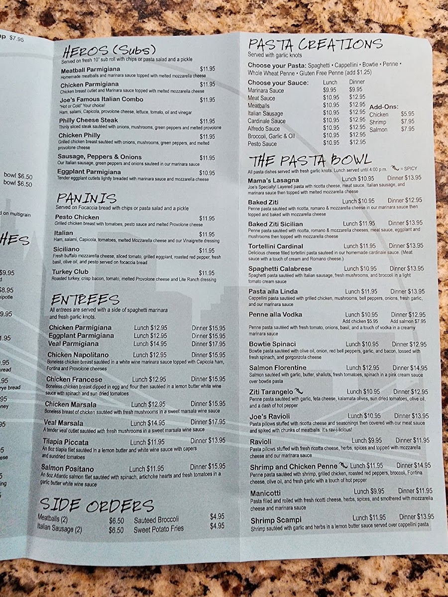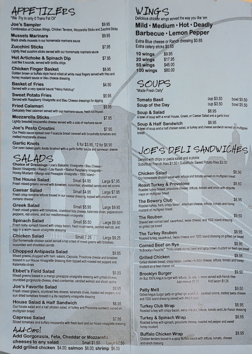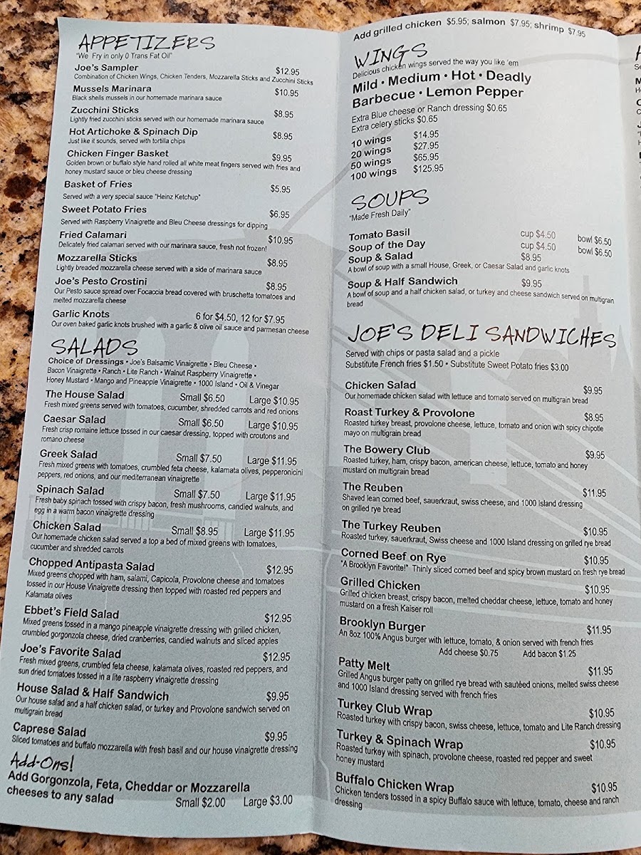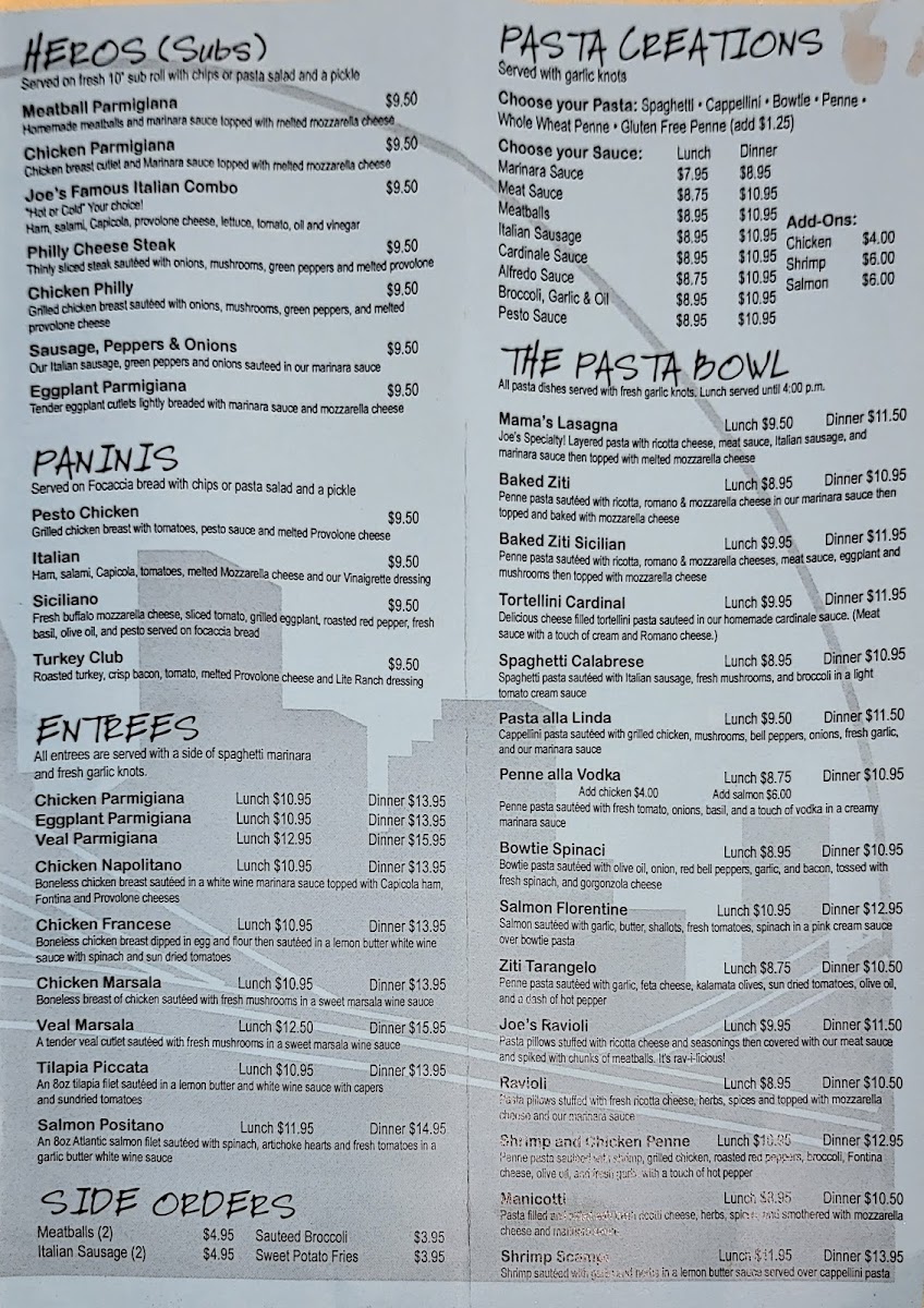Brooklyn Joe's Pizza Pasta offers a straightforward and inviting menu that draws from classic Italian and New York-style pizzeria traditions. The selection includes casual bites perfect for family dinners, relaxed nights out with friends, or a comforting solo meal after a busy day. From crispy garlic knots and mozzarella sticks to hearty slices of traditional New Yorker pizza, the menu balances familiar favorites with thoughtful Italian touches.